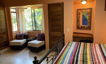 La Luna is one of the upstairs apartments in Casa Ventana al Cielo. It consists of 1 bedroom and 1 1/2 baths in a spacious 750 sq. ft.. There is a large open living area with Lanai style doors that open to a private terrace. The terrace overlooks the beautiful bay, pool, gardens and jungle, and of course unbelievable sunsets! The unit has a large master suite with a custom king size bed, air conditioning as well as a safe. There is a full bath off the master with a huge shower featuring a pebble floor. The fully equipped kitchen has a full size refrigerator, gas stove and oven as well as all pots, pans and utensils to stay in and cook your entire vacation, (who wants to do that)? We have also installed an ionized water filtration system making the water in the whole home safe to drink. There is a dining table on the terrace as well as bar seating inside. The comfortable living area has an additional half bath. Our home is located on the quiet North side on the newly completed Calle Coral just a short walk to restaurants, markets and the center of town. The beach is only 5 minute walk to the end of our street. Sayulita has everything you need a brief walk, no car is necessary here!