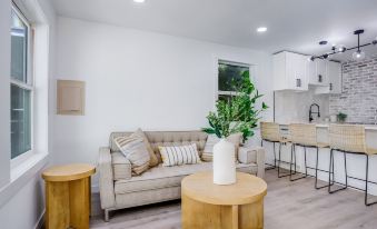 Our cottage boasts a beachy decor, with comfortable furnishings and all the amenities you need for a comfortable stay. Inside, you'll find a cozy living room complete with a comfortable sofa and flat-screen TV, a fully-equipped kitchen, and a bedroom with a comfortable queen-size bed. The cottage can comfortably accommodate up to three guests, making it ideal for couples, families, or small groups of friends.