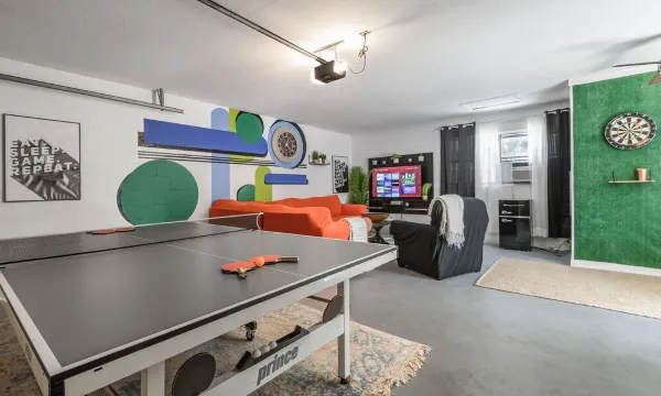 The amenities are plentiful! Beautiful pool, game room, enough TVs to entertain an army!