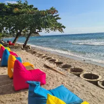Отличные завтраки (шведский стол). Хорошая береговая линия. Есть уроки серфа, сувенирный магазин, организуют фотосессии.
