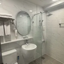 工作用的商務旅館,地點離公司很近,距離火車站也很近,交通算方便,房間很乾淨,只是浴室乾濕分離沒很做好,洗完澡後,整個廁所會有很多的積水。 自助報到跟自助退房很方便,但是沒有早餐提供,如果房間掛上請勿打擾,不只備品沒辦法更換,連水都沒有辦法補充。