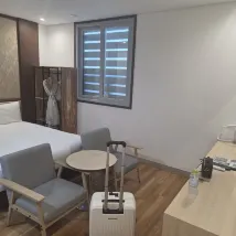 從來沒有住過這麼差的酒店,甚至不是酒店而是motel的感覺,這在國內真的就是快捷酒店或以下的檔次。如果一晚300塊那也合理,但是兩晚2000RMB啊omg! 1、進門後就是廉價出租屋的感覺,門口衹放了一雙不知道多少人穿過的塑料拖鞋,我們兩人入住衹有一雙拖鞋也蠻搞笑的。韓國現在大部分酒店不提供一次性用品,那沒問題,一般前台都可以買,但是去前台問卻説他們沒有賣一次性拖鞋。 2、最神經是洗手枱設定在床的旁邊,每次上完廁所要到床旁邊洗手,真的是第一次看到這樣的酒店。 3、廁所和浴室不是完全乾濕分離的,且洗澡水壓非常小,從來沒有洗過這麼小的水的酒店。好像自己在過什麼沒水的艱苦年代。特別是有一天晚上回來晚了11點左右,熱水就更小了,根本沒有辦法洗頭,而且水温很低,夏天洗澡洗得凍死了。 4、床就是床架+床墊,連個床頭都沒有的,被子感覺潮潮的。 5、床旁邊的燈的控制面板有問題,晚上睡覺所有燈熄滅後,面板上的燈是亮的。把燈打開面板的燈就熄滅了,感覺是不是線路接反了。於是導致晚上睡覺的時候就一直有亮光照着眼睛很難受。 6、小冰箱的製冷聲音吵到不行。隔一段時間就會嗡嗡嗡地開始發出低頻振動聲音,吵到沒法睡覺,衹能把冰箱插頭拔了。 綜上,這根本不是一晚一千多酒店的配置,我第一次住酒店萌生了要不明天換一家住吧的想法。請大家避雷吧。