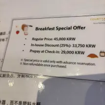 衛生:每天都可安排打掃 早餐:簡單乾淨衛生,粥粉麵飯都可安排,水果生菜也不錯。怕麻煩的家庭可以試試。 酒店的前方的紅房子cafe和樓下的Sappon cafe 冰美式和tiramisu 出品都很不錯。周遭都有挺多餐廳。 交通:可以請前台幫忙叫車,走路去明洞和city hall都很方便10-15分鐘。過了馬路就是南大門市場。 下次去還會選擇。