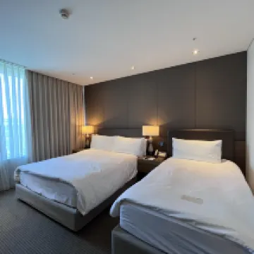 非常棒的入住體驗! 我被免費升級到了家庭房… 那天所有員工似乎心情都很好,所以服務也很棒。 早餐選擇豐富,大媽手藝超讚。 房間寬敞乾淨,樓層走廊還有製冰機和飲水機。 地理位置絕佳,直達樂天購物中心和機場。 備註:如果您打算搭乘大眾運輸工具前往首爾…會非常混亂,而且要走很遠才能到市區。