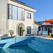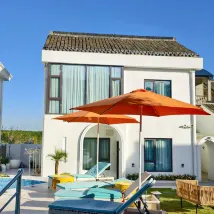 雙床房也太可愛啦!院子裏陽光房養花、草地配鞦韆,泳池邊躺椅超愜意,白天曬太陽晚上吹晚風,設施齊全住着舒心,下次還來~