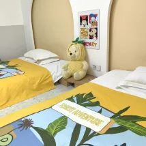 帶娃去迪士尼選了這家有親子房的民宿。這家親子雙床房的裝飾孩子非常喜歡,牆上掛着超可愛的唐老鴨和米老鼠掛畫,搭配温馨的軟裝,整個房間像闖進童話世界,娃一進門就興奮地指給我們看,床品軟fufu的。院子更是驚喜,設計感滿滿,綠植搭配可鞦韆,娃在院子裏跑着玩,我們能坐着歇腳,性價比絕了,下次來還住這兒!