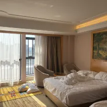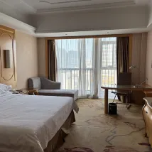 Nhân viên lễ Tân ít sử dụng tiếng anh nhưng dùng thành thạo máy dịch ngôn ngữ nên sẽ không gặp nhiều khó khăn khi giao tiếp bằng tiếng nước ngoài (bạn chuẩn bị sẳn lời giới thiệu về ngôn ngữ mình sử dụng và nhân viên lễ Tân sẽ chọn để trao đổi với bạn). Điều tôi ấn tượng là các nhân viên rất nhiệt tình và tốt bụng. Tôi đã nhờ bạn nữ Lễ Tân đeo mắt kính làm buổi sáng đặt giúp xe Didi nhưng giá chuyến xe lại nhiều hơn số tiền tôi gửi trả cho bạn ấy. Hy vọng tôi có thể gửi trả lại.