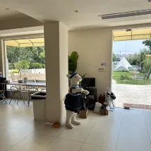 奶油色系的裝修,很舒適,周圍空氣也很清新,院子裏還有一個泳池,可以拍照會很出片(可惜這次沒帶)前台小姐姐也炒雞好!像是鄰家大姐姐。去迪士尼也很方便,有接送服務。打車也比較方便。院子裏的貓貓十分可愛,很親人,直接就跟我們進房間了,那我直接就是!關上門!喜貓星人十分友好的民宿,大家來住宿看到貓貓的話可以給它用一次性紙杯喂一點水,因為最近蚊蟲多,水碗裏不能一直放水,所以貓貓自己就找水喝。總之是一次十分滿意的旅行,民宿很好,貓貓很好,迪士尼也很好^_^