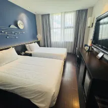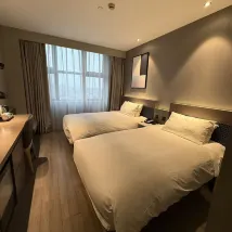 房間體驗也完全沒讓人失望,一進門就沒聞到半點異味,床單被罩摸起來乾淨又柔軟,躺上去像陷進雲朵裏;最驚喜的是隔音,即使住在路邊房,晚上也沒聽到半點車流聲,睡得特別沉。衞生間乾濕分離做得很徹底,洗完澡地面一點不滑,洗漱用品是淡淡的桔子香味,用着很舒服。 退房時的小貼心更是戳人,前台主動遞來兩瓶礦泉水,説“路上渴了方便喝”,已經把酒店安利給身邊所有朋友了,下次來這座城市,絕對還選這兒