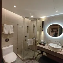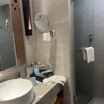 酒店地理位置極佳,周邊吃飯、購物、交通都非常方便,去各個景點也很近。 環境設施: 大堂寬敞明亮,很有設計感。房間乾淨整潔,床品舒適,一夜好眠。衞浴乾濕分離,熱水充足,