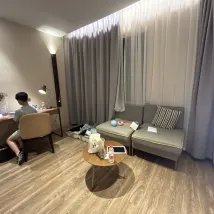 酒店位置非常棒,離地鐵商場都不遠,服務人員非常熱情,房間設施乾淨整潔,外賣有機器人會送到房間;酒店還有洗衣機、烘乾機,電熨斗,而且都是免費使用!超級棒的體驗!