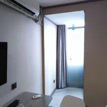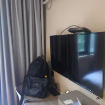 走的時候,發現牆角的插座旁,沒有積灰的縫隙。非常乾淨,服務態度良好,保潔阿姨態度很好, 設施:設施齊全,屋裡還有音響