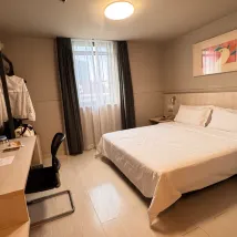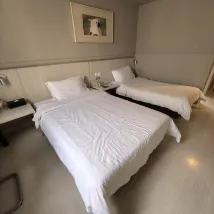 I really liked the room where I stayed. It was on the 7th floor so it was very quiet even if I had to take the stairs from the 6th to the 7th floor. The staff at the front desk were also very friendly and polite. The metro stop it’s around 7 to 10 minutes walk and there are many restaurants and coffee shops ( luckin coffee ) next to the hotel . I recommend this hotel