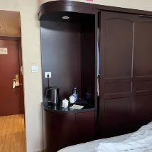 想找個離火車站近的酒店,選擇這家,看評論知道它設備老舊,能忍,知道它服務一般,能忍,知道它早餐品類少,一般難吃,也能忍,但這不知道外賣不讓送上來,真是忍不了,現在全國旅遊服務業卷這麼厲害,這家酒店居然不讓外賣送上門,你不讓外賣員送上來,服務員給送也行,服務員不給送,你弄個機器人給送也行!全不行,必須自己下樓取,***定三個外賣,下樓跑了三趟,電梯裏寫着刷卡按鈕,留長者一個人在屋裡黑着燈,拿着卡跑到第三趟的時候,突然發現不刷卡就能按樓層鍵,***逗我玩兒呢,現如今居然有這麼不人性化的酒店,我也是大無語!