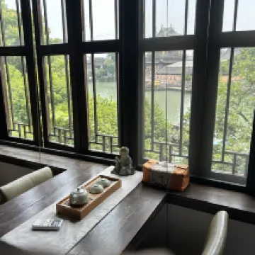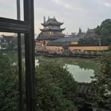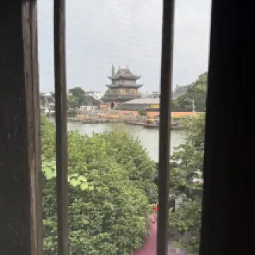 真正的景觀房!臨河可以看到對面的圓覺禪寺! 院子很雅緻,有葡萄,石榴無花果和柿子樹,一樓還有茶館,可以點一壺茶坐在河邊。 內部衞生做的非常乾淨,是這麼多民宿住到現在數一數二的乾淨民宿。有一次性牙刷和洗漱用品。馬桶是智能的,沒有煙味。 裝修是民國和明清結合的風格,內部裝修有很多明清老木雕。 老闆服務很親切,會告訴我們怎麼走到地鐵站最近。 贈送的早飯裏生煎饅頭,蒸餃和小米粥很美味。