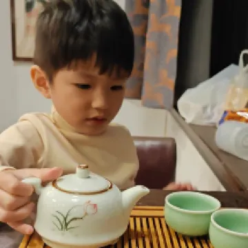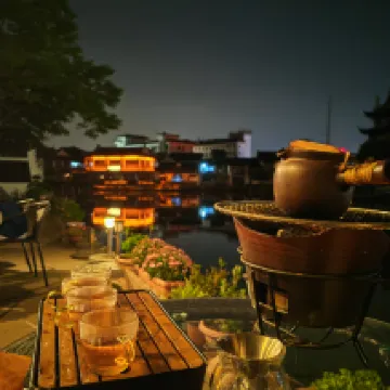 客棧老闆非常nice,和樂於助人,車未到就已電話要幫忙提行李(由於酒店在朱家角內,車輛無法駛入哦,但步行1分鐘就可到酒店,所以就算提着行李進來也不費事),聽説早餐廚藝也是一流哦 房間我們也很喜歡,非常棒的河景,對面就是寺廟,當佛鐘聲響起,感覺身心皆能被凈化,整體就是古色古香,房裡備有茶具,兒子因此學會了如何倒茶品茶給老爸提茶 呵呵,在晚上幽靜和美麗外景與子品茶,堪稱完美。 酒店位置非常好,是在朱家角的一個末端(應該吧,哈哈),可以非常有全局性的走遍整個朱家角古鎮,品完所有美食! 最後晚上回到客棧,老闆安排了在客棧門口旁的河邊擺個桌子,坐在河邊碳燒着茶壺,細品着茶,吃點在朱家角古鎮掃貨回來的戰利品小吃,一家人坐着聊聊天,那一刻真的是人生啊~真想把時光定着,享受這種安逸和忘憂的感覺。 這也是我們一家4口上海遊的最後一晚,完美結束。 感謝!