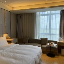 酒店很乾凈,床和枕頭很舒服,叫了外賣會有機器人送餐到房間,早餐品種很豐富,味道也好,特別是蟹殼黃很好吃😋。前台很熱情,服務到位。打掃衞生的阿姨也很熱舞,會主動打招呼。窗外可以看飛機降落。停車場蠻大的前台掃碼免費停車。