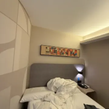 房間衞生比較乾淨,廁所設施稍微有點老但是好用,也沒有味道,床軟軟的,一次性拖鞋很舒服,房間環境挺不錯的,前台小哥哥小姐姐態度都超級好,非常耐心地給我們介紹各種權益,感覺十分細心(表揚一下7.31晚上和8.2晚上的員工,是不是可以加獎金?)設施很齊全,雖然沒用上洗衣房,但是洗衣機烘乾機掛燙機都有,前台小哥哥還帶我用微波爐熱了飯🤝🤝早飯餐廳環境挺好的,好好吃!交通也很方便,離地鐵站很近,去各個地方也很方便,下次還會來住的! 希望廁所可以貼一個兩個按鈕一起按的標識,我真以為廁所壞了(