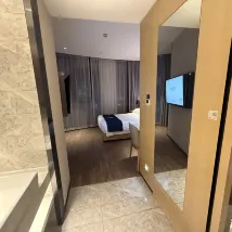 因為飛機延誤,我到達的時候已經接近0點,還好前台是24小時接待,服務態度不錯。房間裏很整潔,床看起來有點短但對於我的身高綽綽有餘了。早安還挺豐富的,吃到了小餛飩。 不過要注意酒店距離高鐵站直線距離看起來很近,但出租車的話會距離翻幾倍,去火車站和機場要提前好充足的時間。