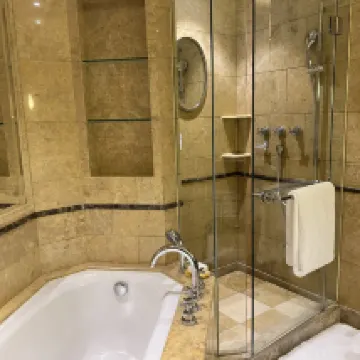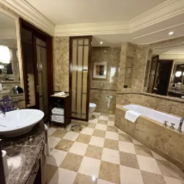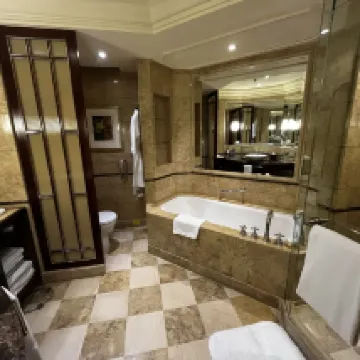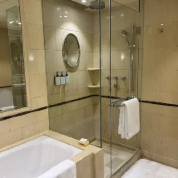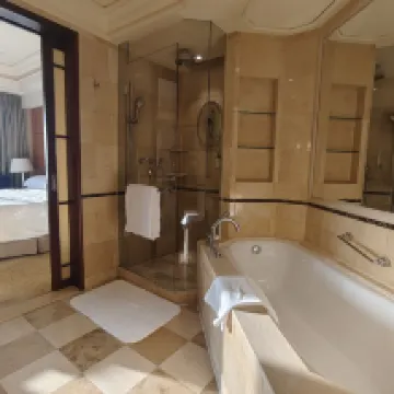當年就在馬路對面初中就讀,看到過瑞吉如日中天的輝煌。此次利用浦東消費券的機會在裝修前趕了一次末班車。訂了行政房,到店提出想要朝西的,前台貼心安排了一間37樓的房間。 房間設施保養不錯,床頭原本沒有插座,是後面固定了萬用插座在床頭櫃上。迷你吧雖然需要付費,但是有東西比空空如也的看起來好看。浴缸乾淨。百瑞德的備品和香皂,有香味。值得一説的是床品真的很舒服。網上説的人體工學椅舒適是舒適,不過沒感受到啥特別。窗外景色好,能從後灘掃視到陸家嘴。 恆温泳池水温還挺高,大風降温,但游泳還挺舒適。健身房設備齊整。 40樓行政酒廊關閉,歡樂時光衹能在大堂,早飯也沒有專門而是一起。餐飲品類不算特別豐富但也還可以了。 雖然設施舊,但是服務好,工作人員不僅有禮貌,而且有信心和氣場,是剛入行的人不具備的。