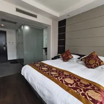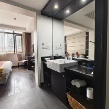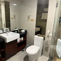 房間設施齊全環境整潔 雖然酒店較老但入住體驗很好 位置很不錯 離地鐵站不算遠 房間窗外可以看到靜安cbd全景