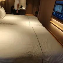 這次的酒店入住體驗堪稱完美!房間佈置温馨雅緻,燈光暖而不刺眼 ,床鋪軟硬適中,一躺下就好似被雲朵包裹。衞浴設施嶄新且乾淨,熱水即開即有。房間還貼心配備智能音箱,能隨心播放音樂。酒店服務也超棒,入住時送了歡迎水果,好感度拉滿!