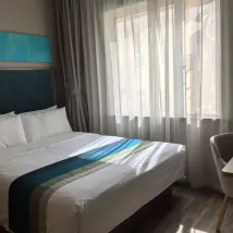 首先:炎熱的夏天一進酒店,整個人都涼爽了不少,隨之而來就是前台小姑娘的問候聲,辦理入住期間應該是經理奉上一杯自製的檸檬百香果冰飲,説外面熱,喝點我們做的飲料,瞬間被感動,飲料也挺好喝的。其次:上樓碰到阿姨也會很和藹打招呼,剛打開房門,又是一股涼爽,酒店已將空調提前打開,房間很亮堂,挺温馨的,衞生打掃的很乾凈,房間還有備了4瓶免費的礦泉水,真的非常貼心。最後:晚上逛街回到酒店,大堂的安保師傅遞來一碗綠豆百合湯,説防暑的。這家酒店真的太暖心了,下次有機會還是會選擇,物超所值!!!