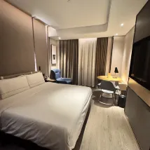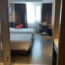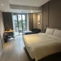 這個房間還可以,還有個小露台,服務很好,服務人員都熱情友好,房間很大,設施也不錯,有小食和飲料,酒店周邊有很多吃的,交通也方便。