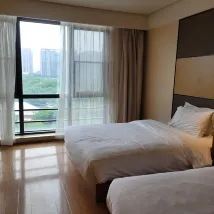 酒店屬於經濟型。給我們安排了高層面向圖書館的房間,空間夠大,房間內有大轉角沙發,茶几和辦公桌椅。全家人住了一週多,非常滿意!
