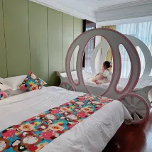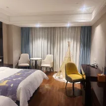 我們是要去迪士尼玩,在攜程上看到這個酒店評價很好,就訂了兩晚高級雙床房,辦理入住時免費給升級了卡皮巴拉主題家庭房,房間寬敞明亮乾淨,服務人員態度好,在這裏住了兩晚,家人都很滿意。入住酒店可以提前聯繫接站,迪士尼接送,機場接送,班車是準時發車,停車位置也很好找,這一趟行程很完美,好評!好評!