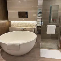 這次入住的上海浦東文華東方酒店,滿意度拉滿。雖然入住當天距本人生日已過去兩天,但是酒店還是貼心的準備了小蛋糕和水果。入住第二天又恰逢中秋佳節,酒店又送了精緻的月餅,非常細緻貼心。 客房裝修風格大氣沉穩,全景落地窗將黃浦江與東方明珠的景緻毫無保留地納入室內。而窗邊的圓形浴缸更是本人最愛,泡浴時抬頭即可見東方明珠的璀璨,客房搭配的全套歐瓏柚子味洗浴備品,滿滿的清新柚子香沁人心扉。酒店的行政酒廊環境高雅,入住期間的一日三頓都是在酒廊用的,本人特別喜歡早餐和下午茶的點心塔,晚餐的配湯也是豐富味蕾的同時還暖心暖胃。 總的來説是一次非常不錯的入住體驗。