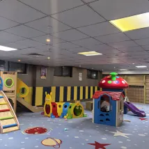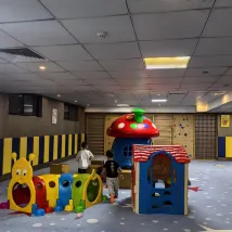 提前一週攜程預訂鹿安花園酒店親子房, 備註遠離電梯、角落,酒店安排的非常妥當,很滿意。 房間比想象的要大,3個成人1個娃住足夠。 酒店的小童樂園的確是小朋友最喜歡的場所,乾淨、玩的內容也比較多。 酒店房間細節也很令人滿意,桌角都包了防撞條,牆壁、窗簾、拖鞋等都是奶龍主題,還配了童車、搖搖馬、帳篷等。 客房部的鄒小英阿姨很認真、負責、貼心,收拾的非常乾淨,貼心的幫忙在房間把手上掛了請勿打擾的告示牌。 餐飲部的龔士傑阿姨笑容很温暖、也很貼心。我們詢問由於趕車,小朋友還在睡,能否打包一點帶給小朋友吃。龔阿姨二話沒説,熱心的幫忙去拿打包袋。 總體特滿意,衹是忘記拍很多酒店圖片了,光顧着帶娃了哈哈。