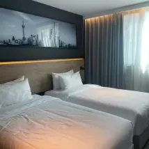我是來看五月天演唱會定的酒店,先説結論:下次還會考慮定。 首先交通的話,他非常靠近曹楊路14號線的13號口,步行大概5分鐘到達。但是注意3號線,4號線,11號線都不太近,涉及到站外換乘問題。像我需要乘坐11號線到上海游泳館看演出,就先從曹楊路到真如,再從真如到上海游泳館。稍微麻煩一點點,演出9:45散場,我22:20左右到酒店。 其次酒店服務,非常好。前台的服務員都非常專業周到,進出酒店都會問候,主動關心,點贊。 接着酒店設施,衹有一台烘乾機和一台洗衣機,就是我覺得相對減分的地方。其他設施都挺完備的。 還有居住體驗,我的客房是雙層玻璃,隔音效果非常好。床品也很不錯。 最後,早餐挺好吃的!中西結合。