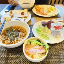 很滿意,給我們升房了。服務特別好。我最滿意的是提供三餐!午飯晚飯是可以另外點的,我們下動車到這裏後,可以點現燒的薺菜大餛飩、雪菜麪和意大利麪,方便又好吃!附近商場也不遠,都是打的十幾塊。