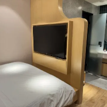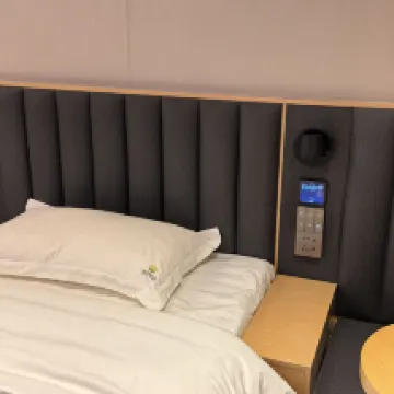 經常出差來住的一家快捷酒店,裝修風格很年輕化也很前衞,這次比較驚喜的是酒店幫我升級了三樓的雙人間,比二樓的房間更乾淨寬敞,而且設備很新,應該是剛裝修不久的,進門就有小度AI,可以語音播放音樂調光線,電視屏幕也很大可以投屏看電影,非常滿意~~