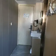 為了高考訂的鐘點房,時間選擇了12:30開始的四個小時,前一天下午酒店來電話説不能保證這個時間有房,如果沒有退房就要等,建議我改成過夜房,我沒有接受。第二天為了保證有房,我十點半就到了、辦理手續,説沒有雙床問能不能換成大床,我也就接受了,想着孩子考完過來,沒想到他們辦理入住就是開始計算時間,也罷,為了保證來了就能用,我加了30元一小時,説好到四點結束(就是多給半小時)。沒想到哦,我們進出一共三次,每一次房卡都失效需要重新設定,而且衹有一個電梯慢死,三點三刻不到服務員就來催退房,既然沒有能力就不要開鐘點房啊,服務員一張張的臉就像欠了幾百萬一樣。再説説房間,小就不説了,隔音那個差,中午是為了休息一下的,好嘛門外動靜一清二楚,和麗舍公寓其實是共用的,除了地段,真的啥都沒有,絕不會再來的