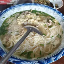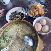 老闆是01年的帥小夥,服務很周到,全程來回望仙谷接送3回。我們過去半路上下大雨,提前15分鐘給老闆打了電話,他提前開車到下車點等我們,一下車立馬接到民宿休整了再到去景區玩。還給了遊玩建議避坑,進景區後有不清楚的地方發微信給他立馬給我們指引。第二天老闆媽媽還給煮了非盛的早餐,醃鹹菜炒香乾真絕。