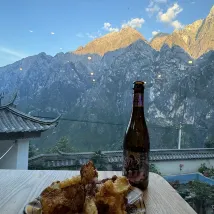 民宿其實跟中途客棧在同一條村,第一天途步完成走到村口,真是多一步都不想走,遇見半山就是村口第一家,設施衞生環境都可以接受。老闆夫妻倆很熱情,晚飯是簡單的家常菜,牛肉非常鮮嫩,價格合理,青菜是點完菜後看着老闆娘從地裏摘來的,老闆還送了一份大理的炸乳扇給我們,喝着香格里拉啤酒吃着大理乳扇欣賞玉龍雪山的日照金山,晚上到天台喝酒吹牛拍星空,別提多爽了。