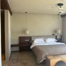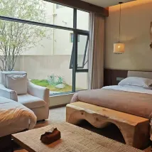 雲南蜜月旅行的最後一站香格里拉,本來想訂一個藏式風格的民宿結束旅程,在好評榜看到這家很有侘寂風的別墅酒店,距離獨克宗古城步行十分鐘左右,自駕來的朋友們車子可以停在酒店門口,結果真的沒有讓我們失望,民宿老闆很熱情,幫我們升級了房型,還贈送了免費早餐!是很有特色的房間,超大的落地窗户,房間的設計無不透露出設計師的高超審美,小院兒晚上昏暗的燈光和景緻很漂亮,房間配置供氧機和乾濕器,一進屋就是很熱乎的地暖,讓我們兩個北方人一進屋就卸下了疲倦立刻躺下休息了。找了半天的毛巾原來都是配置的一次性毛巾、浴巾,一次性拖鞋都是毛絨絨的,總而言之體驗感非常好,來香格里拉的朋友們可以來體驗一下哈,酒店提供接送機服務哈,提前聯繫老闆~