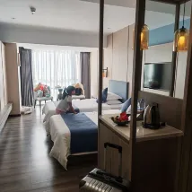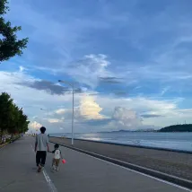 定給朋友住的,朋友説環境還不錯,因為周圍都是住宅區,也不靠馬路,房間很安靜,很舒適。酒店也是可以自助辦理的,機器人送餐也都有,確實方便,床頭還有個二維碼可以掃,居然是機器人可以幫忙去售貨機拿東西,這倒是第一次見,還不錯!周圍吃飯的話前台是給我們推薦就在隔壁的砂鍋粥,屬實好吃。去東海岸大道也挺近,開個共享單車就能到,一路吹吹海風,舒服!逛着逛着,還逛到了很多人放風箏的地方,沒想到還有不定期的風箏活動呢!晚上週圍也有散步的地方,就喜歡這種慢下來的節奏!