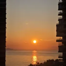 在小區裏,就是不同公寓樓改裝的快捷民宿。入住方便,前台服務熱情,及時調整房間。 屋內有一次性浴巾,沒有一次性拖鞋,有淋浴用拖鞋。 房間陽台能直看大海,風景不錯。樓下有幾家餐廳,吃飯方便。夜間也可以點外賣。 下樓走不遠就能到海灘,很方便。