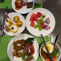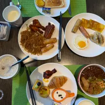 酒店前台小姐姐好亲切👍房间衛生有進步中间! 而在歺厅吃早歺時看到一枱四个客人,有服务员為其中一个男客人打包二袋食物,然后男客人离开,一會男客人又返来継續开歺,贵酒店的自助早歺是否可以打包的吗?还是因为要点赞与业务需要?服务员才出现这样的行径呢??得来不易的人人自律的行为因为要点赞而出現这行為……有點😖 希望管理层能重視培训🫡