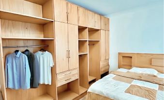 Inside, you'll find a spacious living room with a TV, sofa, and dining chairs, perfect for hosting friends and family. The fully equipped kitchen features a gas oven, microwave, and kitchenware, making it easy to prepare delicious meals. With its partial air-conditioning, this apartment is perfect for year-round comfort.