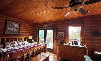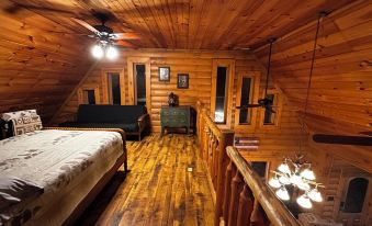 Suited for gatherings of all types, visiting the Bourbon Trail, The Ark and Creation Museum, church group retreats, weddings, girlfriend getaways, wildlife viewing and more. We offer a luxuriously appointed log cabin fitted with leather furniture, hand peeled log beds and furnishings, game/book/dvd library, trails, stocked fishing pond and much more.