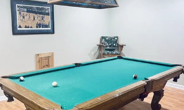 Game room with pool table, foosball, poker table, air hockey, board games and more. Cornhole, firepit, hiking trails, pond and 20 acres for your outdoor enjoyment. Beautiful Amish crafted outdoor seating.