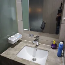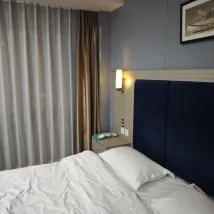 床頭燈不好用,現修的,空調開一晚屋裡也不太熱。水龍頭放半天沒有熱水,得放一會花灑,水龍頭才出熱水,花灑泚的可哪都是,床單也是埋汰的,整體看上去還不錯,細節別看,看完鬧心,這就是入住體驗。訂了兩個房間都那麼回事吧,價位不高,但也對不起這個價。前台小姐姐服務態度倒是很好。