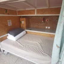 已經是第二次入住了。青旅離青年公園站c口很近,就在彩電塔早/夜市裡邊,一樓是咖啡和文創店,二三樓是住房。 床位空間是我住的青旅裏最大的,床是1米2的,下鋪有邊櫃,上鋪則是一條小走廊,空間非常充足舒適。公共空間有飲水機、洗衣烘乾機、微波爐,男女洗浴分開。期間遇到社區停水,也提前為大家儲好了水,為當天入住的客人免費提供了水和洗漱用品,好評。