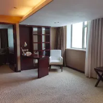 很久沒有遇見這麼高性價比的星級酒店了,雖是老牌五星,但樣樣都不拉下,設施有些年頭但絕對沒有問題,所有人員從前台到保潔,從泳池到餐廳,全部彬彬有禮熱情周到,尤其是前台周總,要給一個大大的贊! 住的是聯通房,居然還有個不小的客廳,真是大大的驚喜,而且還有洗衣機微波爐電磁爐,舉家出行絕對首選! 酒店位置優越,太原街商圈就在邊上,中山公園步行可到,瀋陽站也不遠,地鐵到瀋陽故宮就四站路。酒店自帶地下停車場,非常方便! 自助早餐重點説一説,從來沒見過現包的麪點和餛飩,絕對新鮮!