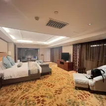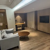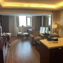 酒店位置非常的好,附近就是萬達,還有很多好吃的, 前台小姐姐給免費升級了房間,房間非常的大,隔音效果特別的好特別的安靜,視野還非常的好,酒店阿姨打掃衞生也很乾凈,看到我自己帶了煮茶機,還給我多放了幾瓶礦泉水,酒店的早餐也非常多非常豐富,用餐環境也很好,可以説是十全十美,非常值得入住.