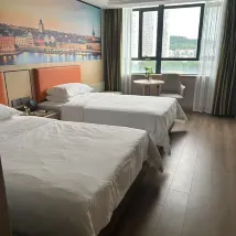 房間雖然不算大,但是乾淨整潔,床1.35還是挺大的,拼一起很適合帶娃,早餐也不錯還有米粉。工作人員態度好,十一入住送了小國慶,小朋友也有小童拖鞋和牙刷